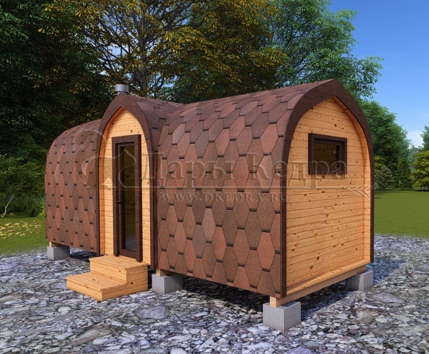 Баня-бочка круглая из кедра 2 метра Это изделие круглой вытянутой формы с одним парильным отделением. Внутреннее пространство включает в себя печь у дальней стены и лавки из кедра по обе стороны бани. За счет компактной формы баня нагревается в течение 30 минут. По вашему желанию ее можно укомплектовать козырьком, верандой и печью с внешней загрузкой, благодаря которой весь мусор после топки остается на улице. Круглая баня-бочка не требует полноценный фундамент, поэтому при необходимости ее можно перенести в другое место. Обращаем Ваше внимание, что в стандартную комплектацию бани входят лавки в парной с обеих сторон. Дополнительно можно заказать полок открытого или закрытого типа! Кедр обладает ароматическими свойствами. Он не деформируется и влагоустойчив, при правильном уходе за деревом на нем не развиваются грибки и плесень.
