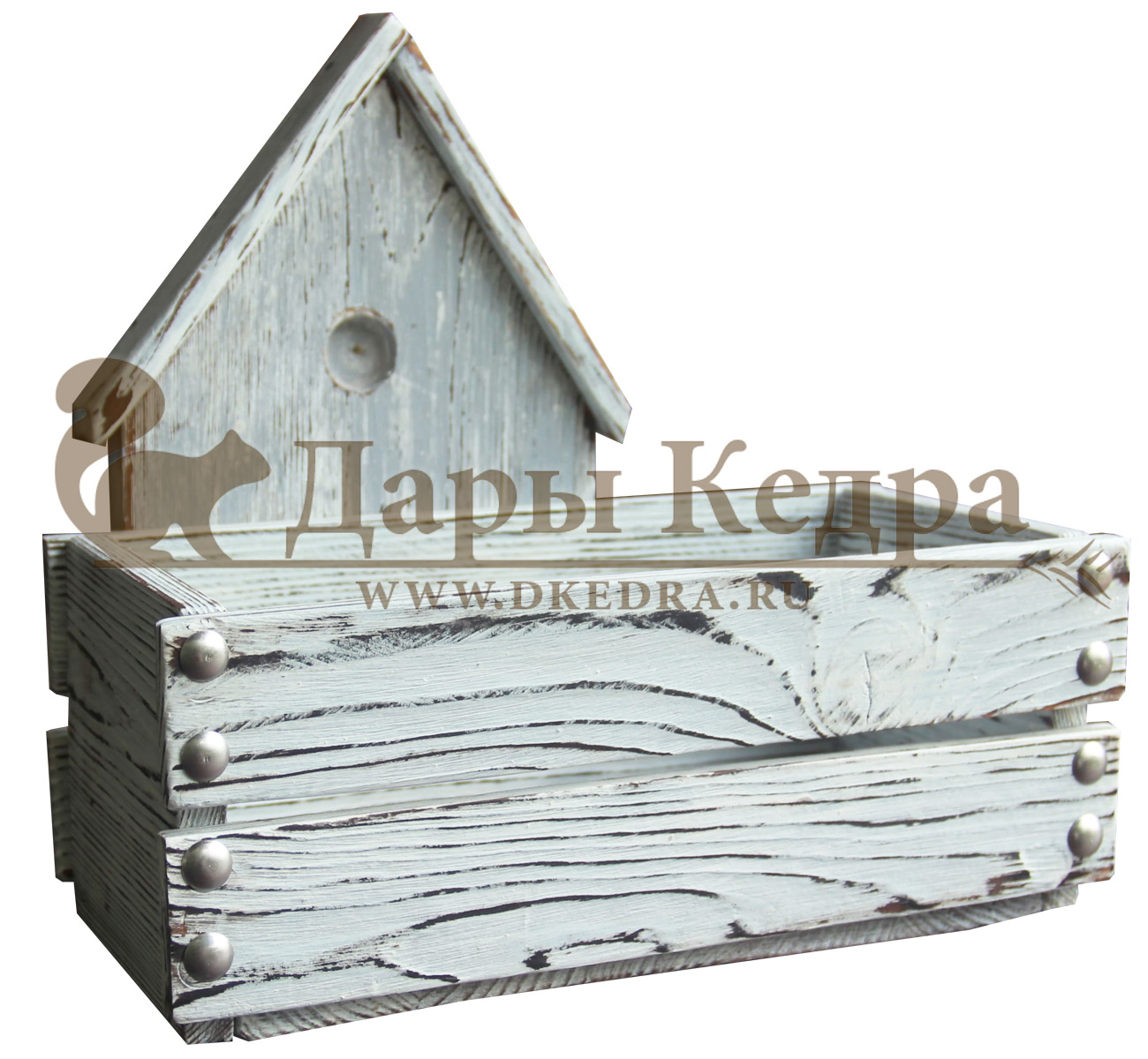 • Деревянный ящик-домик Компания Дары Кедра изготавливает деревянные ящики, которые подойдут в качестве украшения любому интерьеру гостиной, кухни, детской комнаты. Они могут быть использованы в качестве конфетницы, вазы для фруктов, а также оригинальной упаковки подарка любимому человеку, ребенку, коллеге. Обращаем внимание, что вариант некрашеного изделия можно посмотреть в дополнительных фотографиях к товару!